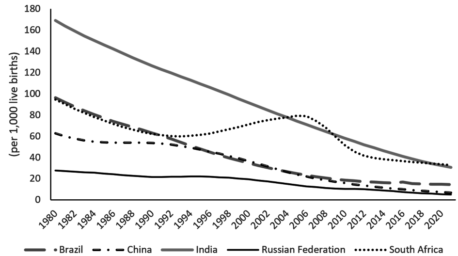 Figure 2: Under-Five Mortality Rate, BRICS (1960-2021)